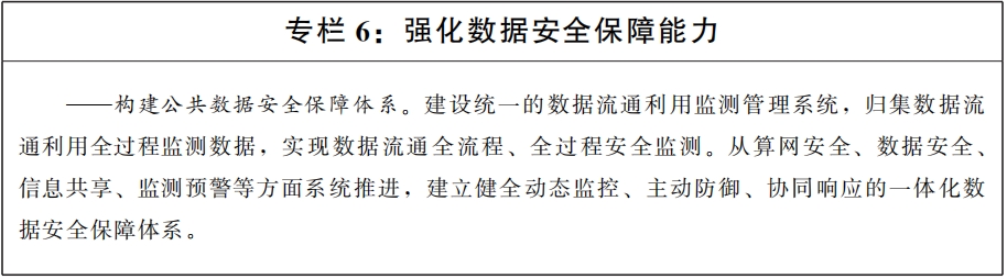 (十九)提升數(shù)據(jù)安全保障能力。加強(qiáng)公共數(shù)據(jù)可信采集、加密傳輸、可靠存儲(chǔ)、受控交換共享、實(shí)時(shí)分析、智能應(yīng)用、銷毀確認(rèn)及存證溯源等環(huán)節(jié)的安全技術(shù)支撐,有效規(guī)避數(shù)據(jù)隱私泄露、違規(guī)濫用等風(fēng)險(xiǎn)。推動(dòng)“數(shù)盾”體系試點(diǎn)示范工程建設(shè),提升數(shù)據(jù)匯聚關(guān)聯(lián)風(fēng)險(xiǎn)識(shí)別和管控水平。培育數(shù)據(jù)流通安全檢測(cè)、評(píng)估、審計(jì)、公證等第三方專業(yè)服務(wù)機(jī)構(gòu),壯大數(shù)據(jù)安全治理服務(wù)規(guī)模,提升安全服務(wù)效能。探索運(yùn)用數(shù)據(jù)沙箱等技術(shù),構(gòu)建鼓勵(lì)創(chuàng)新、彈性包容的治理環(huán)境。