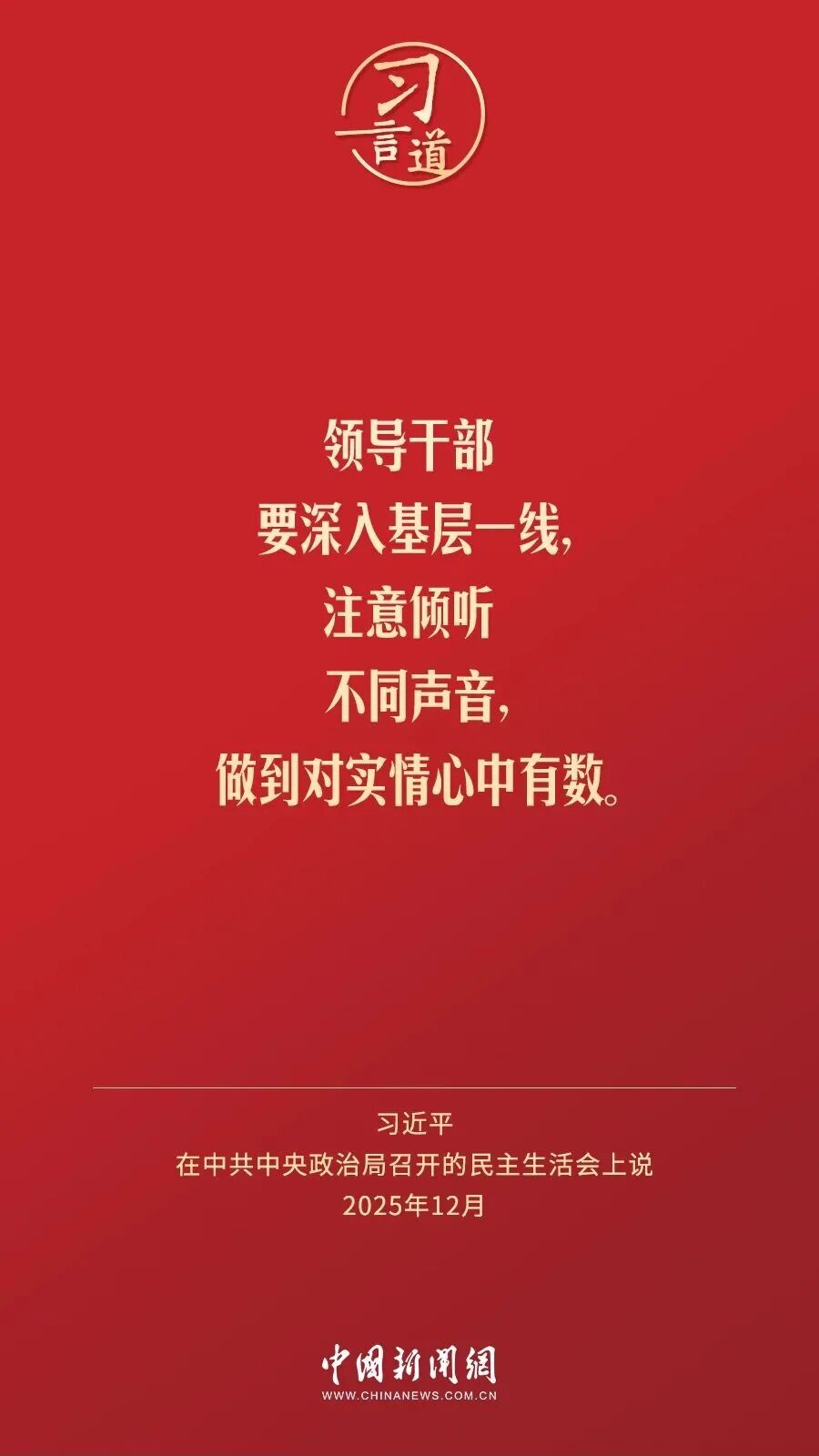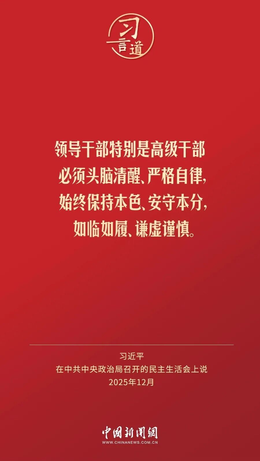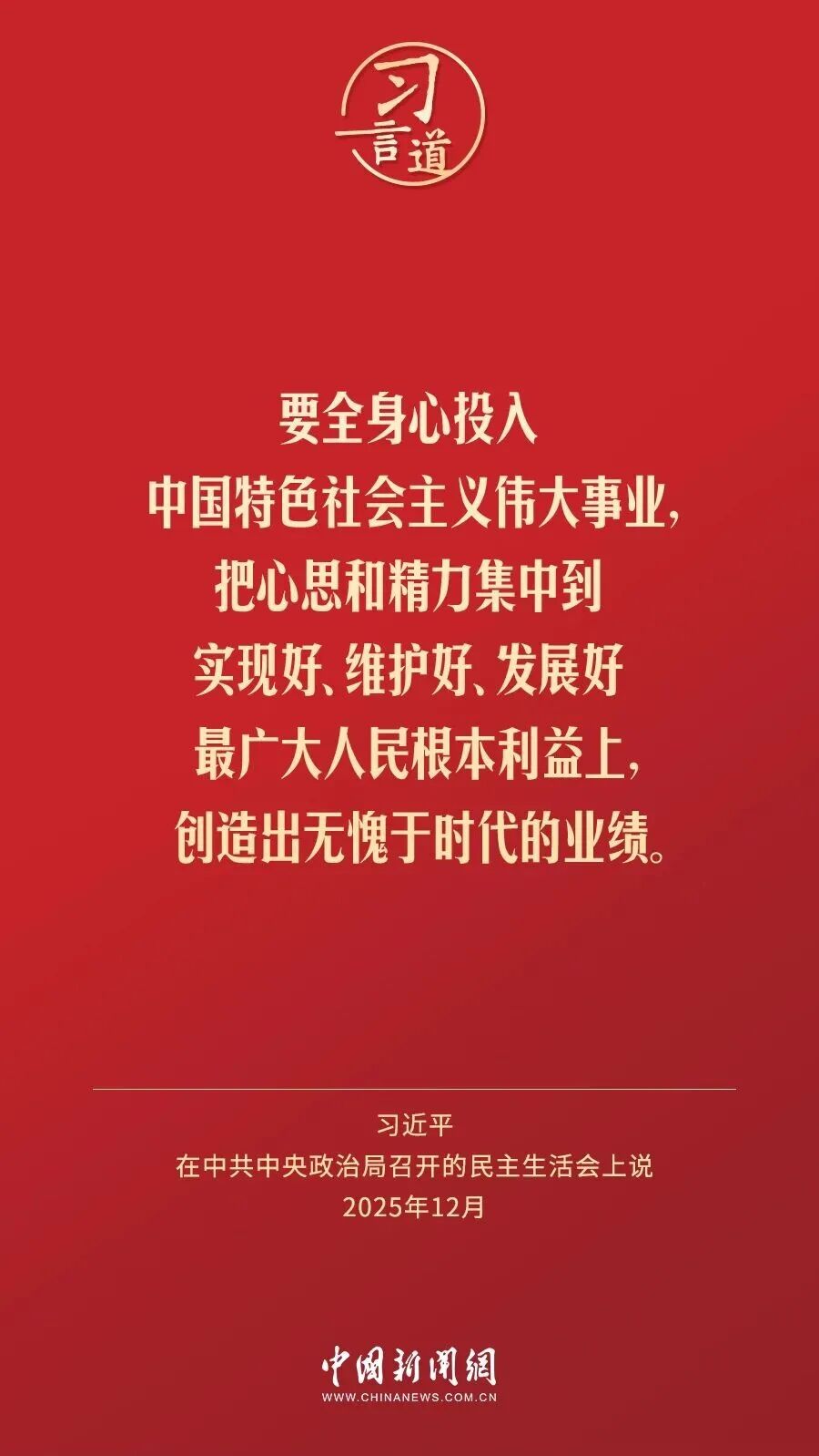 12月25日至26日,中共中央政治局召開民主生活會,中共中央總書記習近平主持會議并發表重要講話。習近平強調——