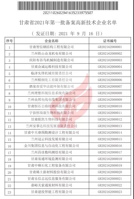 甘肅省水利水電勘測設(shè)計研究院有限責任公司中標甘肅省引洮供水二期配套城鄉(xiāng)供水信息化專項工程方案、招標設(shè)計及施工圖設(shè)計項目;平?jīng)鍪谐缧趴h棗林溝水庫工程;萬州區(qū)魚背山水庫大壩安全評估報告編制;協(xié)合拉引水樞紐、秋格爾引水樞紐、英爾引水樞紐安全評價項目。中標蘭州中川機場三期擴建供油工程項目機坪航站區(qū)工程勘察。中標省政府為民實事保障性租賃住房項目監(jiān)理。根據(jù)《高新技術(shù)企業(yè)認定管理辦法》和《高新技術(shù)企業(yè)認定管理工作指引》有關(guān)規(guī)定,全國高新技術(shù)企業(yè)認定管理工作領(lǐng)導(dǎo)小組辦公室于10月26日正式公布了甘肅省2021年第一批備案的294家高新技術(shù)企業(yè)名單,建設(shè)監(jiān)理公司榜上有名,被評定為“高新技術(shù)企業(yè)”。