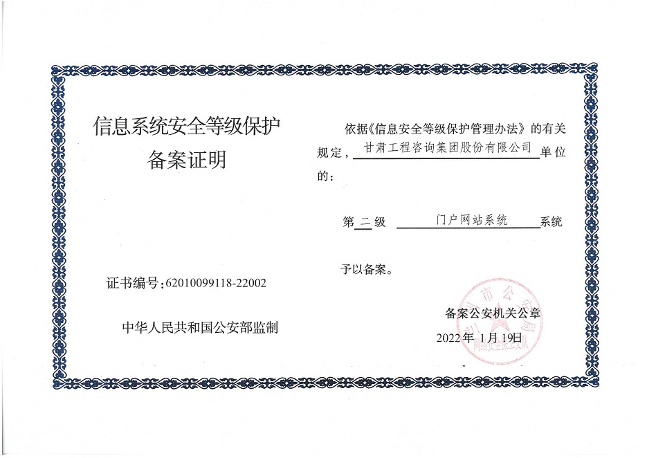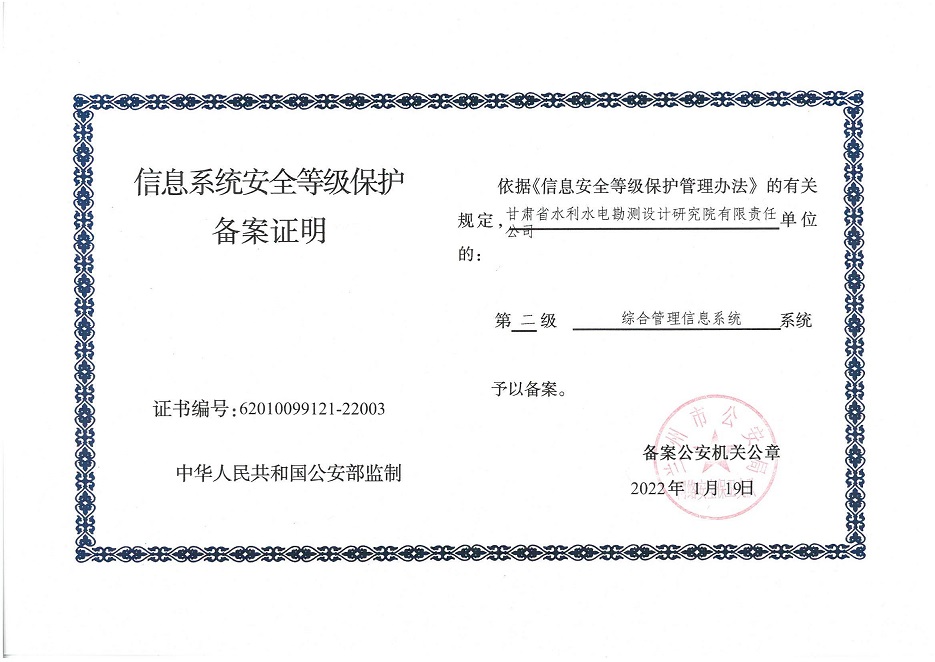 自工作開展以來,相關(guān)子公司積極貫徹落實集團公司工作舉措,集團本部、建筑設(shè)計院、水電設(shè)計院、土木工程院、招標咨詢集團、交通監(jiān)理公司合計16個信息系統(tǒng)已順利完成信息系統(tǒng)安全等級保護2.0測評備案工作,并獲得監(jiān)管部門頒發(fā)的《信息系統(tǒng)安全等級保護備案證明》。通過此次等級保護2.0測評工作,集團公司網(wǎng)絡(luò)和重要的信息數(shù)據(jù)系統(tǒng)的安全防護和保障能力得到進一步提升,為推動集團公司數(shù)字化轉(zhuǎn)型工作打下堅實的基礎(chǔ)。