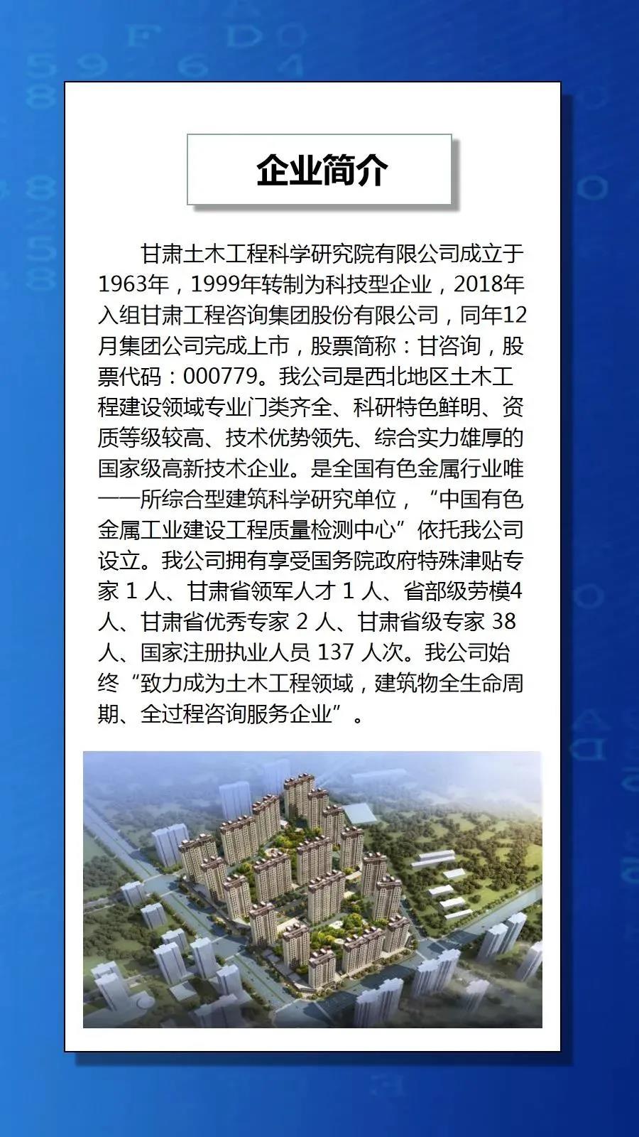 甘肅土木工程科學(xué)研究院有限公司招聘啟事