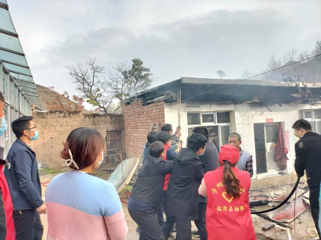 危急關頭,駐村第一書記、幫扶工作隊隊長魏萬軍和村干部侯海峰一頭沖進著火房屋,迅速拉斷電閘,還將電視機等貴重物品搶救了出來。看著火勢變大,穿著防疫背心的村干部,迅速趕往左鄰右舍,緊急動員群眾迅速轉移到安全地方。在鎮領導、幫扶工作隊、包村干部及村干部的帶動下,越來越多的村民也加入到救火隊伍當中,大家齊心協力,奮力撲救,最后終于將火撲滅,人民群眾生命財產得到了保護。