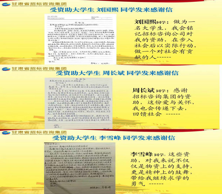 捐資助學(xué),功在當(dāng)代,利在千秋。受資助的貧困大學(xué)生紛紛發(fā)來感謝信,誠摯表達(dá)他們及家人的感激之情,表示會(huì)努力學(xué)習(xí),將來更好回報(bào)社會(huì)。