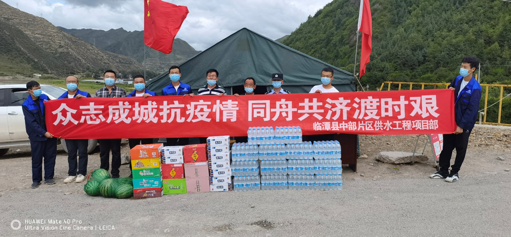 在做好項目部科學防疫、安全生產(chǎn)工作的同時,項目部積極組織屬地疫情防控工作,協(xié)助臨潭縣洮濱鎮(zhèn)搭建聯(lián)合檢疫站點,為檢疫站點提供生活辦公用電、用水等,向奮戰(zhàn)在抗疫一線的檢查站工作人員送去了礦泉水、牛奶、方便面、西瓜等生活物資,向勇于擔當、不辭辛苦、守護人民健康、無私奉獻的抗疫人員表達了崇高的敬意和誠摯的感謝。