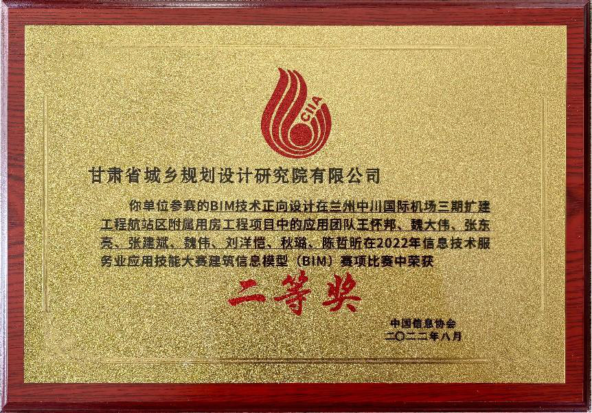 近日,甘肅省城鄉規劃設計研究院有限公司“BIM技術正向設計在蘭州中川國際機場三期擴建工程航站區附屬用房工程項目的應用”榮獲中國信息協會2022年信息技術服務業應用技能大賽二等獎。此次獲獎是繼該BIM應用項目榮獲2021年甘肅省第四屆BIM技術應用大賽設計組一等獎之后,再次摘得的國家獎項,也是規劃設計院首次在國家級BIM技術應用賽事中獲獎。