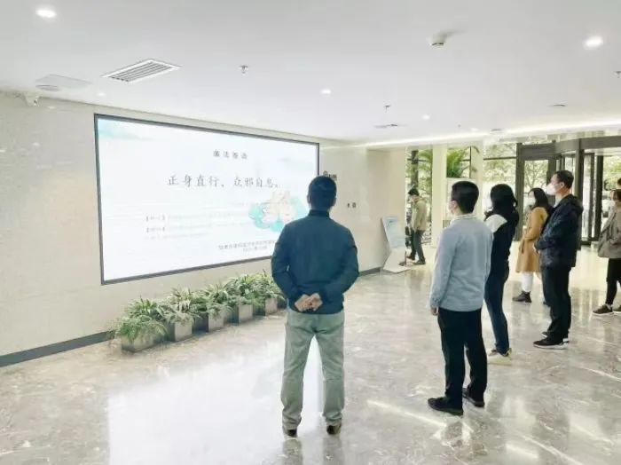 文化的作用如春風化雨,潤物無聲,內(nèi)化于心,外踐于行。近日,省建筑設(shè)計院一樓宣傳大屏播放的“正身直行,眾邪自息”的廉潔寄語,吸引了多名干部職工駐足觀看。
