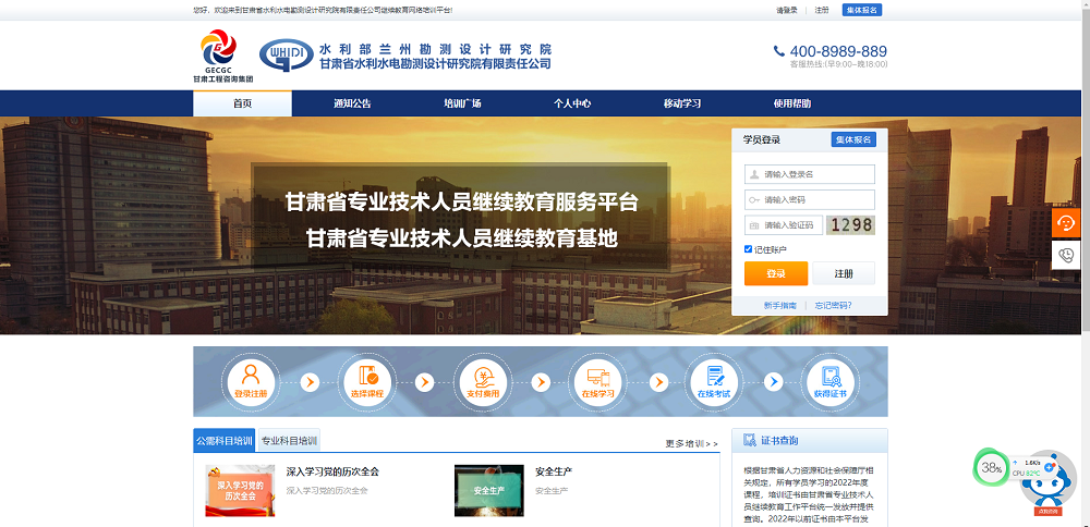 省水電設計院緊緊圍繞《甘肅省省級專業技術人員繼續教育基地管理辦法》規定,進一步完善服務體系,強化基地建設管理,與北京愛迪科森教育科技股份有限公司合作,積極開發在線學習平臺,建設具有水利水電專業特色的網絡學習中心,努力提高在線培訓和開展現代化遠程教育的能力。
