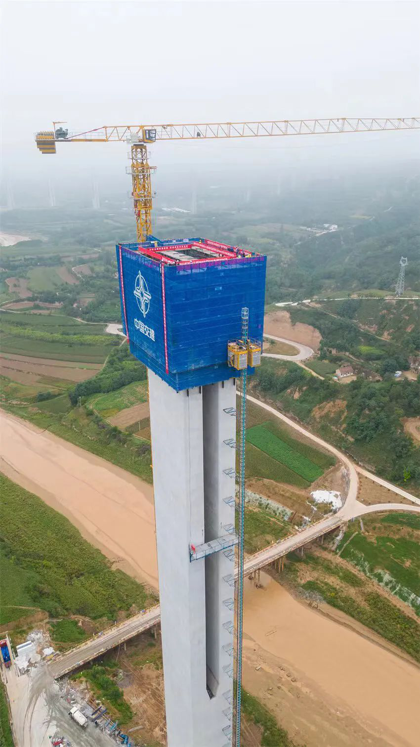 馬蓮河特大橋橋梁位于合水縣西華池鎮(zhèn)與何家畔鎮(zhèn)交接處,跨越馬蓮河河谷,總長2208m,主橋橋長1400m,橋?qū)?5.5m。溝谷最低處至橋面最大高差為196m,16#主墩墩身最大高度178米,墩身共計(jì)使用鋼筋2258.721噸,C50混凝土11431.9m3。該橋系目前國內(nèi)黃土地區(qū)在建跨度最大、墩柱最高、聯(lián)跨最長的矮塔斜拉橋。