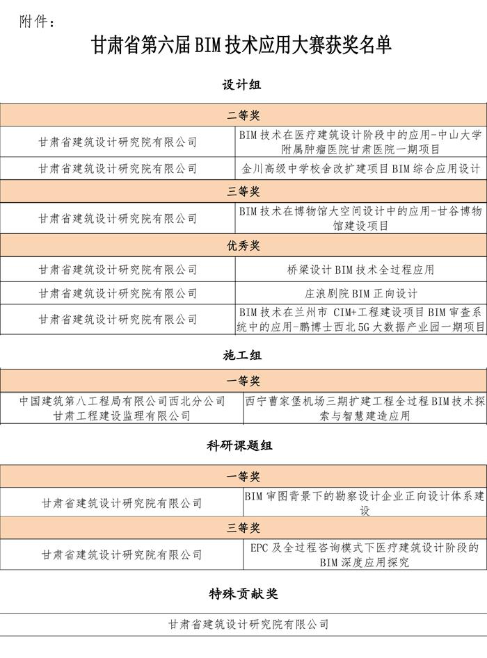 近日,甘肅省第六屆BIM技術應用大賽落下帷幕,省建筑設計院選送的9項作品,經過層層篩選、答辯評審,最終在185個參賽作品中脫穎而出,并分別獲獎。省建筑設計院榮獲特殊貢獻獎。