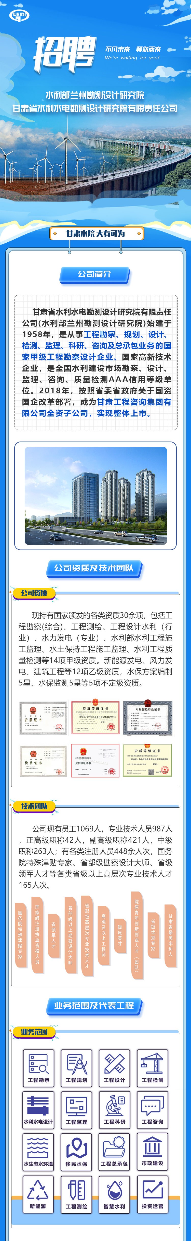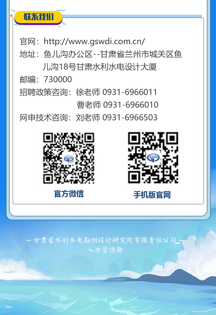 甘肅省水利水電勘測設(shè)計(jì)研究院有限責(zé)任公司招聘公告