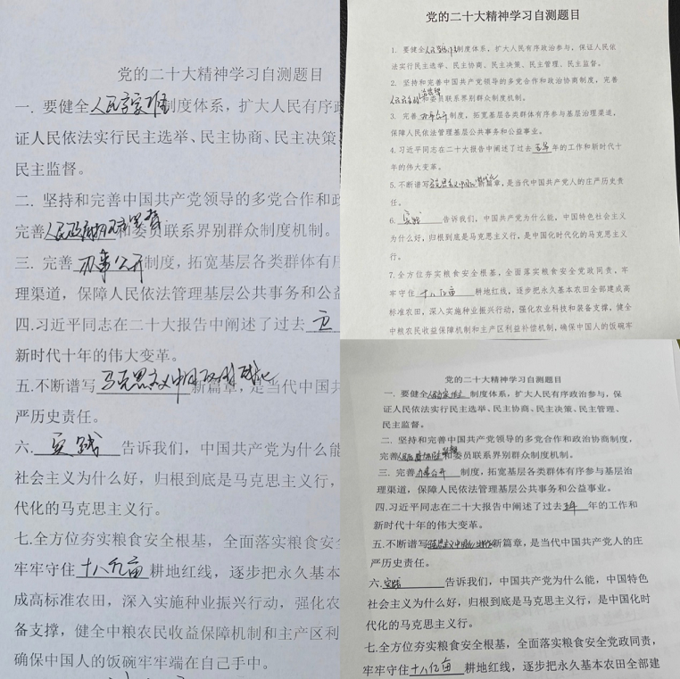 開展答卷測試,檢驗學習成效。招標咨詢集團第三黨支部所屬咨詢中心采取線上視頻會議的方式組織全體黨員居家學習黨的二十大報告原文,通過學原文、悟原理、反復學、時常悟,深刻領會和準確把握報告的精神實質、豐富內涵和核心要義。同時,對黨的二十大報告相關知識開展應知應會測試,通過答卷的方式檢驗黨員干部對黨的二十大精神的理解和把握,達到以考促學、以學促用、學用結合、知行合一的目的。