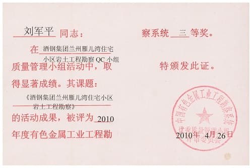 酒鋼集團蘭州雁兒灣住宅小區巖土工程勘察