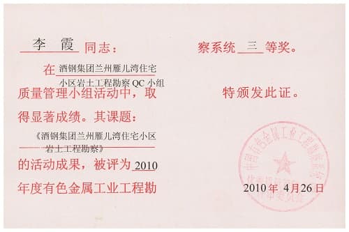 酒鋼集團蘭州雁兒灣住宅小區巖土工程勘察